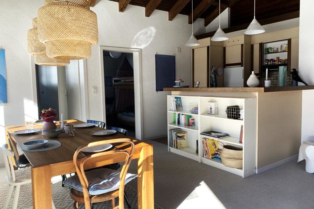 Die grosszügige Dachwohnung im Chalet Marusa in Kandersteg ist eine gemütliche Unterkunft für Gruppen, Familien oder Individualgäste. Die einfache Innenausstattung bietet viel Platz und Komfort. Und die Sicht auf die Berner Oberländer Bergkette von Blüemlisalphorn bis Bunderspitz ist einzigartig.